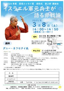 2024年度 愛恵エッセイ賞 表彰式の第2部にて、イスラエル元兵士 ダニー・ネフセタイ氏による講演会を開催します。